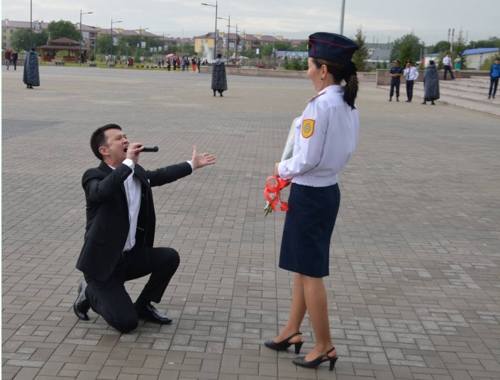 Одним из запоминающихся моментов праздничного мероприятия стал выход 24 полицейских, которые родились в июне 1992 года, то есть в год принятия закона РК "Об ОВД". Белые голуби и шары взмыли в небо из рук молодых полицейских - ровесников казахстанской полиции. После официальной части полицейские преподнесли горожанам сюрприз в виде концерта с участием собственного оркестра, а также звезд эстрады Жолбарыса Сейфуллина, Медеу Арынбаева и многих других.
