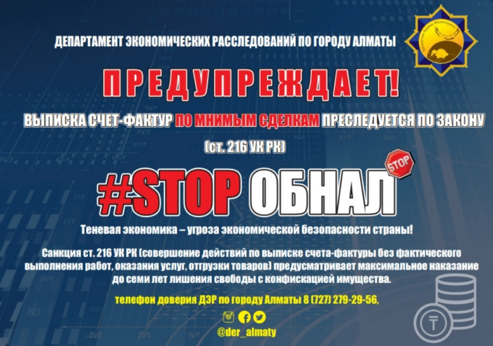 Об однодневке стало известно в результате оперативно-профилактического мероприятия "Стоп Обнал". Сообщается, что 498 миллионов тенге преступникам удалось похитить с ранее арестованных счетов. Деньги вывели на счет подставной компании и благополучно обналичили.