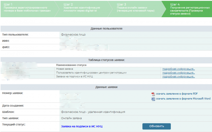 Если физлицо уже является пользователем сервиса "Мобильное правительство" и его данные имеются в базе, то для получения ЭЦП онлайн потребуется совершить следующие действия: