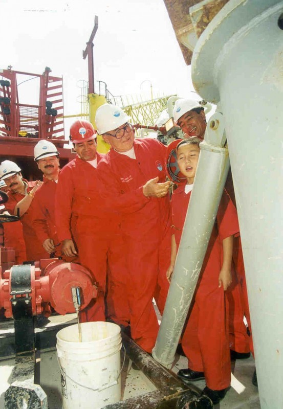 Накануне Берику выдали спецодежду - комбинезон большого размера, так как для детей спецодежда вообще не шьется. "Я получил комбинезон после обеда, и до ночи мы искали швею-надомницу, так как все ателье были закрыты. В конце нашли ее, она подогнала робу под мой размер, хотя сломала, наверное, не одну иглу о плотную ткань. Утром у меня был готовый комбинезон, и я полетел. На Кашагане я впервые увидел Президента Нурсултана Назарбаева. Он зачерпнул в ладони первую нефть Кашагана и сначала помазал ею мое лицо и лоб, потом лица Балгимбаева и Тасмагамбетова, а потом намазался и сам. Намазывая мне лицо, он сказал: "За будущее Казахстана!" - рассказал он.