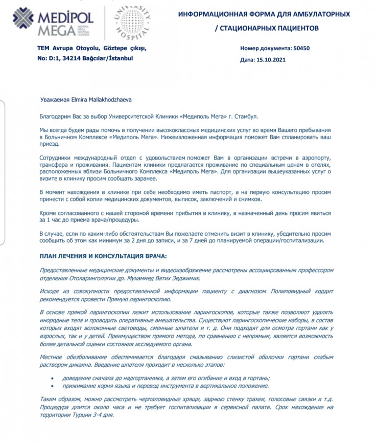 10 ноября женщине необходимо вылететь в Стамбул. Турецкая клиника сообщила, что лечение обойдется приблизительно в 5 500 долларов.