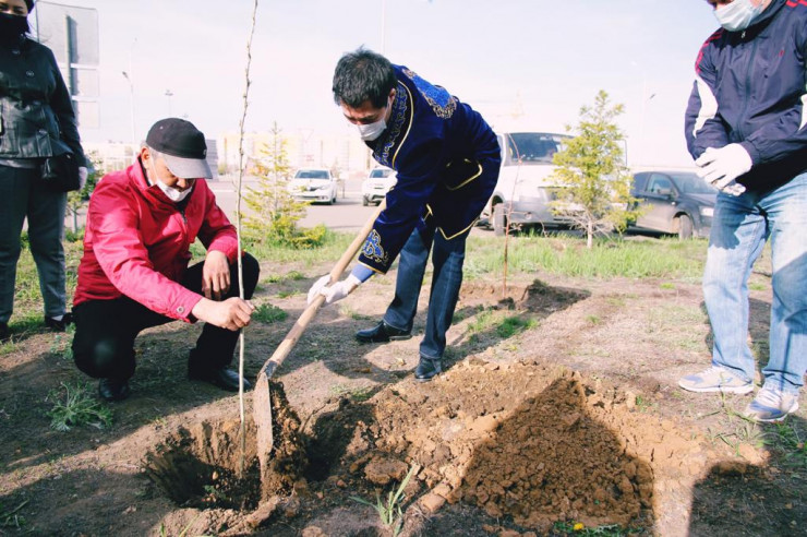 Посадить именное дерево приехал и аким области Гали Искалиев.