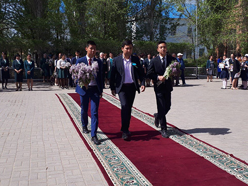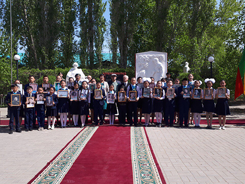 В День Победы в Шалкаре чтут память погибшего класса. В этом году, как и всегда, во дворе школы было многолюдно. Дети, учителя, жители города собрались на митинг. Внуки и правнуки ветеранов прошли с фотографиями своих прадедов. После минуты молчания дети, учителя и родители возложили цветы к подножью обелиска.