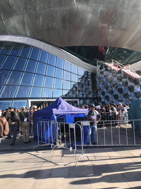 Длинные очереди начинаются на всех кассах у входа в выставочный комплекс.