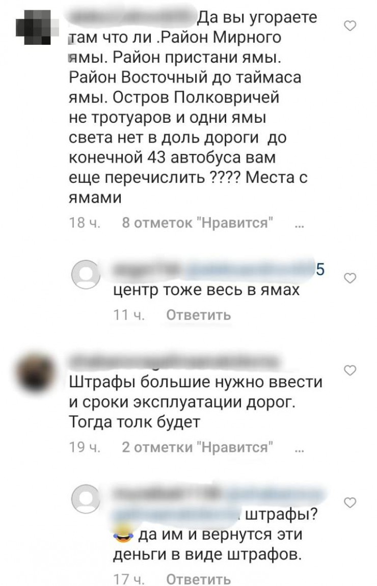 "78 процентов городских дорог считаются удовлетворительными" – это по каким таким критериям? Дыра на дыре на данный момент, а не дороги. И это центральные улицы, основные, я молчу уже об окраинах города! Кто-то явно слеп или притворяется дураком!"