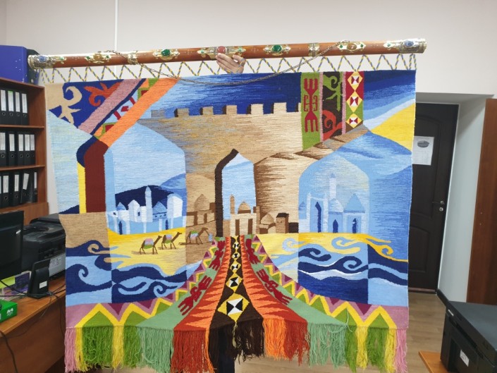 Кто-то сдал в специальный фонд вот такой яркий ковер ручной работы.