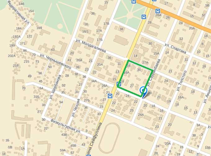 По данным ПКС, в июне 2013 года в квадрате улиц: проспект Сейфуллина, улица Молдагалиевой, Сауранбаева, Чернышевского в Турксибском районе введены в эксплуатацию пять 20-квартирных жилых домов.
