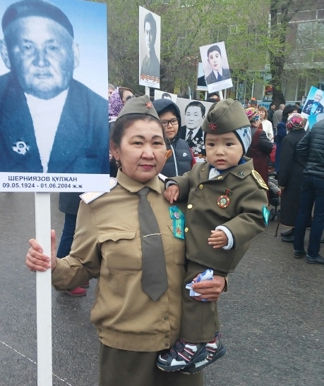 Некоторые горожане пришли на акцию "Бессмертный полк" в военной форме. © diapazon.kz