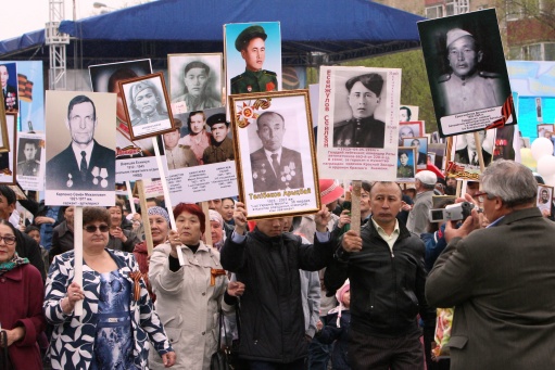 Сотни актюбинцев прошли в День Победы по главному проспекту города с портретами своих родных, воевавших в годы Великой Отечественной войны. © diapazon.kz