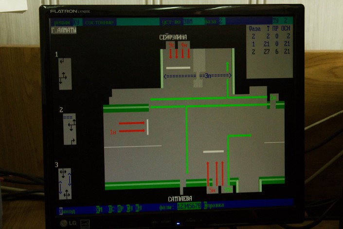 Центр управления перекрестками находится в здании ГорГАИ, которое находится на Байтурсынова - Тимирязева. Это объект режимный, сюда могут попасть только сотрудники.
