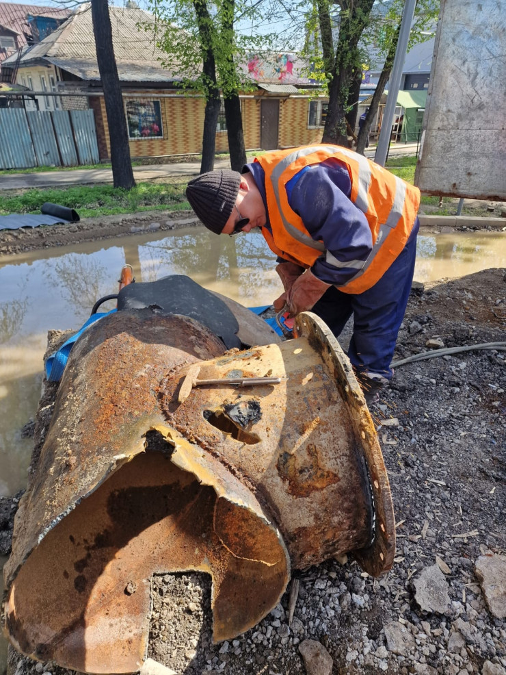 Аварийными бригадами ГКП "Алматы Су" выполняются восстановительные работы на поврежденном магистральном водоводе Д=500 миллиметров, проложенном по улице Герцена. Водопровод был запущен в 1962 году и с тех пор не ремонтировался.