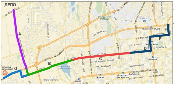 Примерный маршрут ЛРТ в Алматы