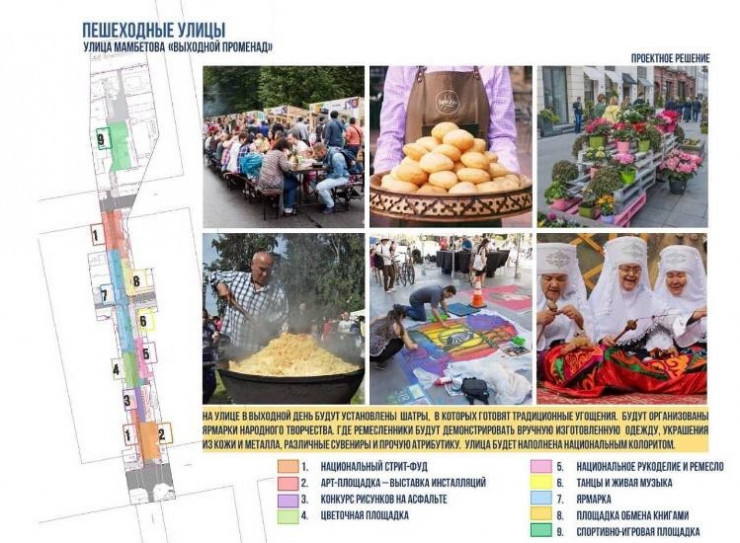 На улице планируется организовывать праздники с восточным колоритом: фестивали национальной кухни, ярмарки ремесленников, туристические экскурсии и другие развлекательные мероприятия.
