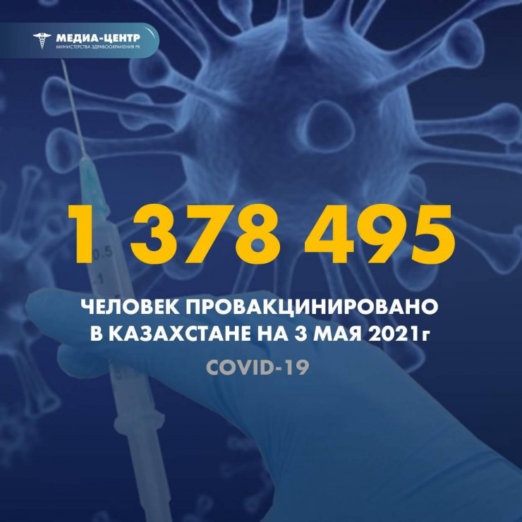 1 378 495 человек провакцинировано в Казахстане на 3 мая, передает Tengrinews.kz со ссылкой на Министерство здравоохранения.