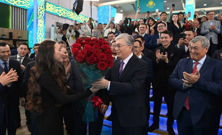 Известная шахматистка Жансая Абдумалик вручила Касым-Жомарту Токаеву большой букет, но Президент вернул цветы молодой девушке.