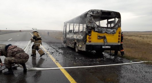 Летом 2017 года в Костанайской области дотла сгорел междугородний автобус, следовавший в Астану.