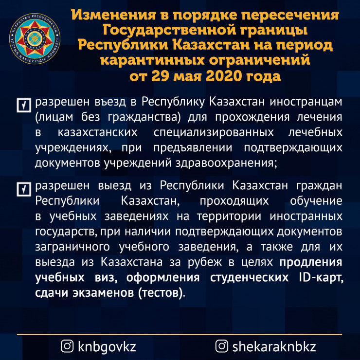 - Разрешен выезд из Казахстана студентам иностранных учебных заведений для продления студенческих виз, сдачи экзаменов, оформления ID-карт.