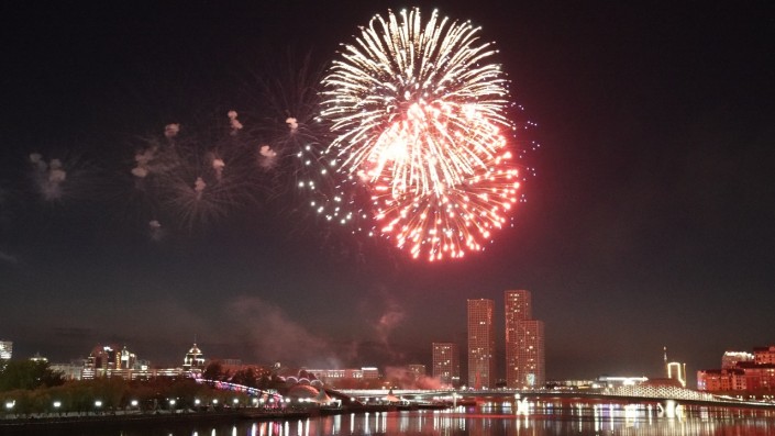 Салют можно было посмотреть с двух точек: набережная реки Есиль и Триатлон-парк.