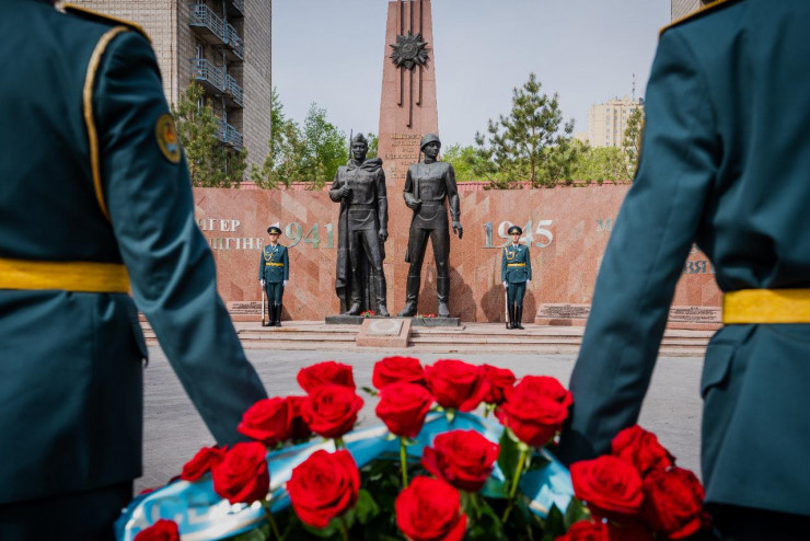 Аким отметил, что в городе также проходит церемония возложения цветов к памятникам.