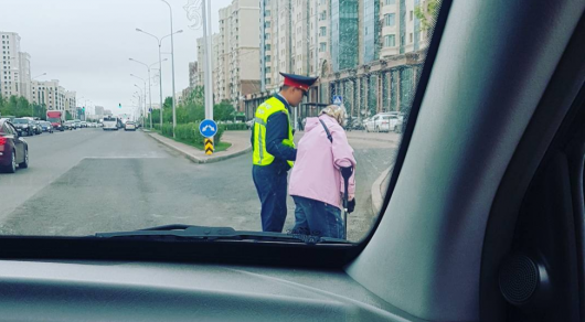 Его коллега - старший инспектор службы спецбатальона Управления административной полиции, старший лейтенант Бахытжан Мауленов растрогал астанчан, когда помог пожилой даме перейти дорогу. Эту историю рассказала жительница столицы Сара Берсан, выложив фотографию в своем Instagram. Астанчанка стала непосредственной участницей событий.