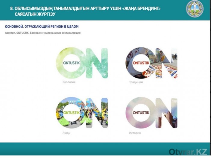 На отчетной встрече с населением аким Южно-Казахстанской области Бейбут Атамкулов представил логотип "Онтустик". Это новый визуальный бренд области, разработанный одним из ведущих дизайнеров Казахстана, сообщает Otyrar.KZ.
