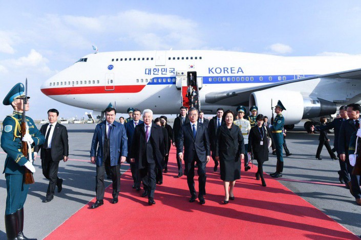 Президент Южной Кореи прилетел в Нур-Султан, передает Tengrinews со ссылкой на пресс-службу Министерства иностранных дел РК.