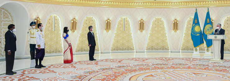 Верительные грамоты вручили посол Японии Джун Ямада, посол Индии Шубдаршини Трипати, а также послы по совместительству - посол Камбоджи Ким Хенг Миэ и посол Шри-Ланки Мигахаланде Дураге Ламаванса.