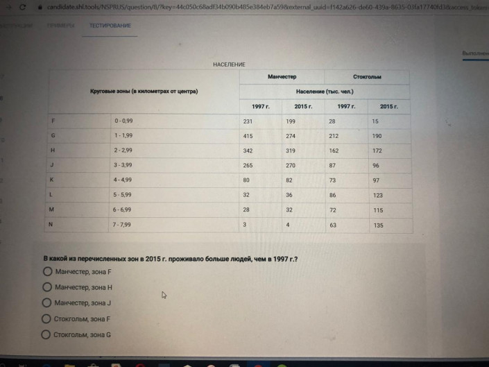 Следующее задание. Кандидату нужно было определить по диаграммам долю импорта фруктов и ягод при условии, что объемы не изменились за год. Далее требовалось рассчитать по таблице, в какой из зон в 2015 году проживало больше людей, чем в 2017 году.
