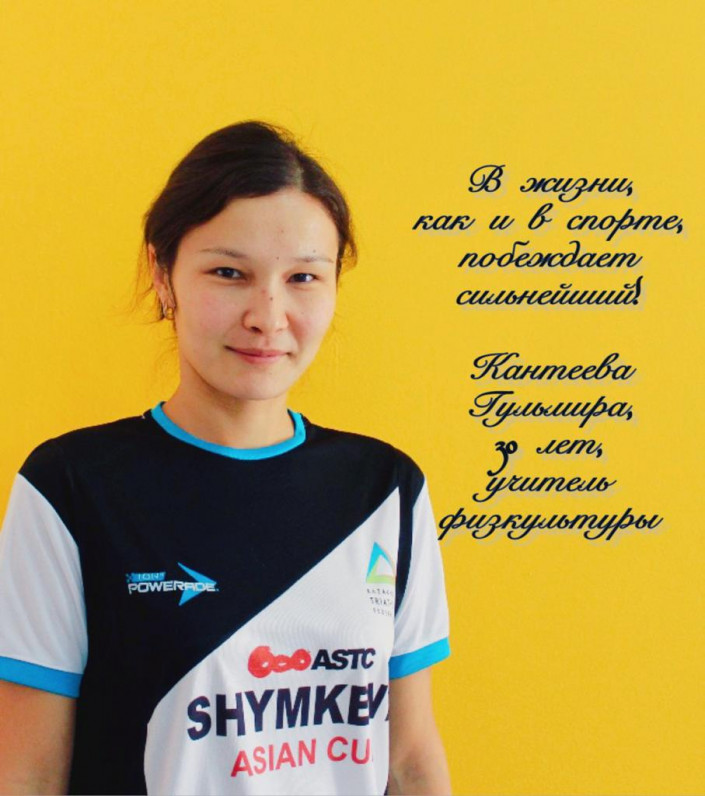 Гульмира Кантеева родом из Карагандинской области. Замужем, растит сына. Последние шесть лет работает учителем физкультуры в школе № 36 имени Казыбек би в Шымкенте. В других сферах себя даже не пробовала. По ее словам, она была очень рада тому, что сумела пройти первый этап отбора, о котором узнала в Интернете.