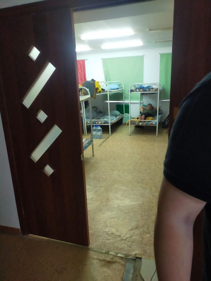 Чтобы вместить всех желающих, администрация поставила двухъярусные койки в актовом зале.