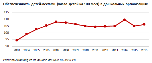 На конец 2016 года на 100 мест было зарегистрировано по 106 детей соответствующего возраста.