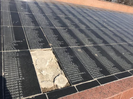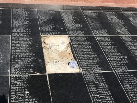 "К нам пришло распоряжение о необходимости дополнить эти списки, всего 29 фамилий, но они разбросаны по разным районам. Поэтому и было убрано несколько плит. Сейчас все работы завершены, а плиты возвращены на место", - подчеркнул руководитель отдела ЖКХ города Нурлан Бектурсынов.