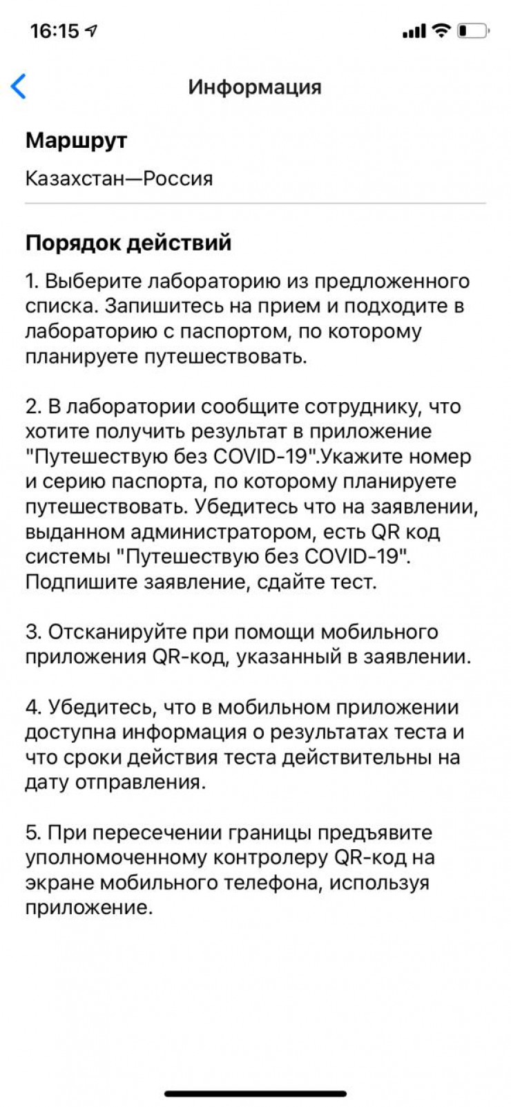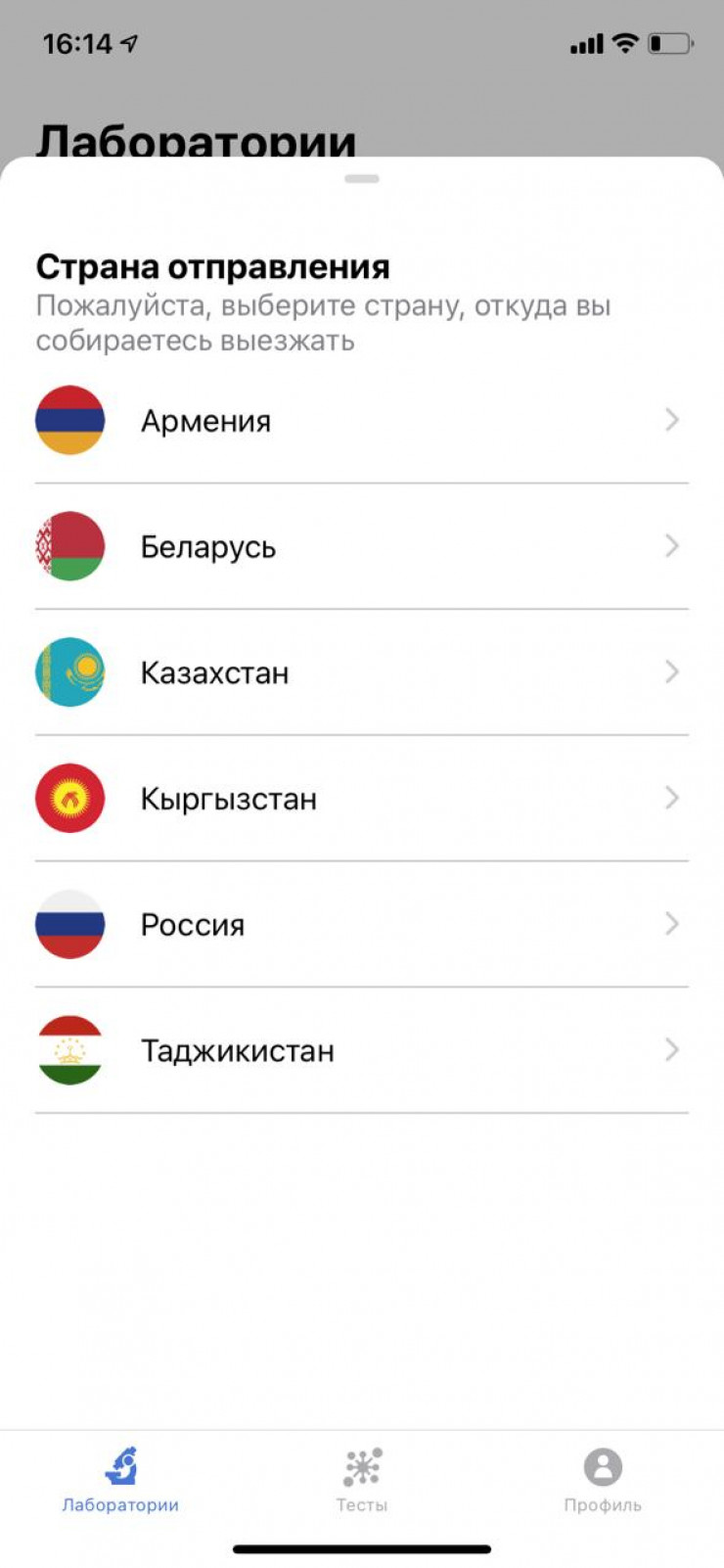 Также в приложении загружен список аккредитованных лабораторий для тестирования на коронавирус. Человеку, сдавшему анализ, не нужно возвращаться в медучреждение, чтобы получить бумажную справку. Его результаты лаборатория передаст в систему, и они отобразятся в приложении. При пересечении границ стран ЕАЭС пользователь сканирует QR-код и может ознакомить контролирующие органы с результатом своего анализа на COVID-19.