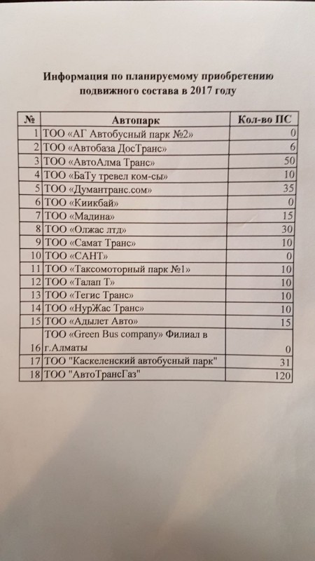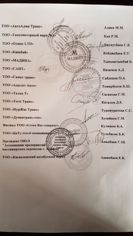 "Мы дали гарантии. Каждый из перевозчиков подписал, поставил свою печать. Мы обязались приобрести новые 367 автобусов на 14,6 миллиарда тенге. Отмечу, что при субсидировании еще три миллиарда тенге возвращаются в виде налогов. Мы дали гарантию, что берем на себя обязательства саморегулирования организации пассажирских перевозок. Это значит своевременное техническое обслуживание, ремонт, контроль на линии, медицинский осмотр, повышение квалификации водителей, то есть полный комплекс задач по организации пассажирских перевозок. Мы говорим, что это будем делать за свой счет, сами. Представили проект договора, в котором это указали. А акимат будет вести контроль", - пояснил президент ОЮЛ "Ассоциация предприятий пассажирских перевозок города Алматы" Сабит Аманбаев.