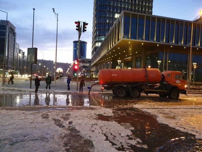Как выяснилось, около пяти часов утра на левом берегу по улице Сыганак, в районе гостиницы "Пекин Палас" произошел порыв водопровода диаметром 400 миллиметров.