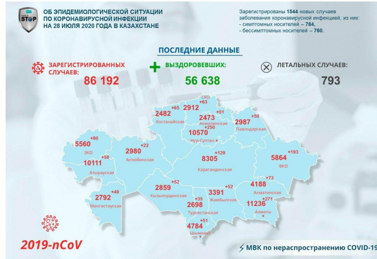 Как и ранее, больше всего новых зараженных выявили в Алматы, Нур-Султане и Восточно-Казахстанской области. Напомним, за прошлую неделю прирост числа заболевших в ВКО составил 26,4 процента.