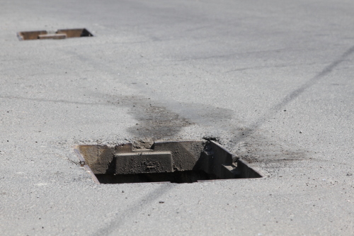 Улица Гастелло знаменита ямами - еще два открытых люка можно увидеть уже на этом завершающем перекрестке.