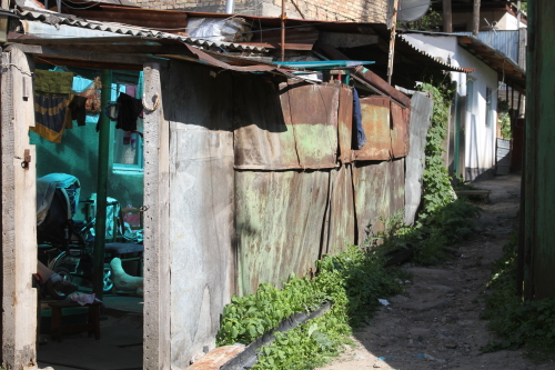Улица узкая, здесь едва разъезжаются крупногабаритные машины.