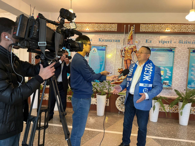 Нурлан Ауесбаев, кандидат от Общенациональной социал-демократической партии, активно ведет свою агиткампанию.