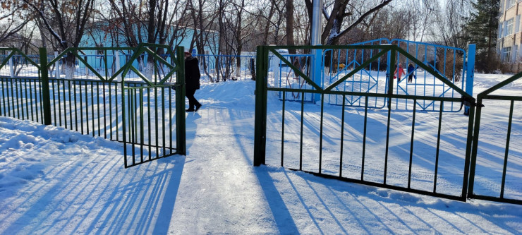 Территория школы огорожена забором.