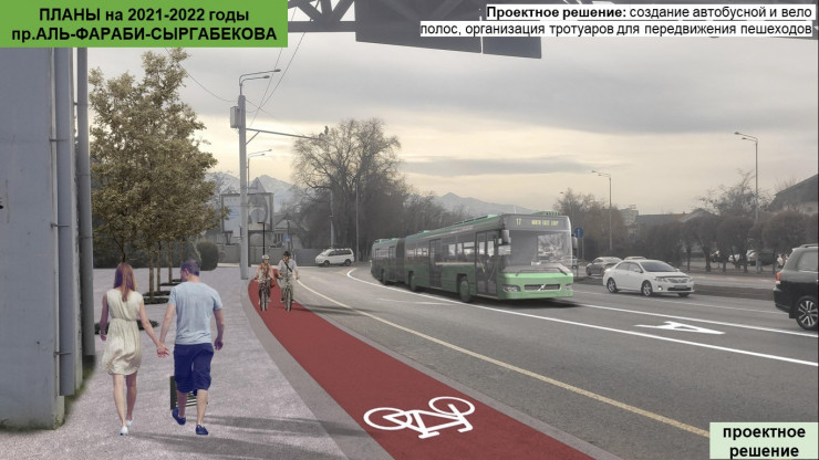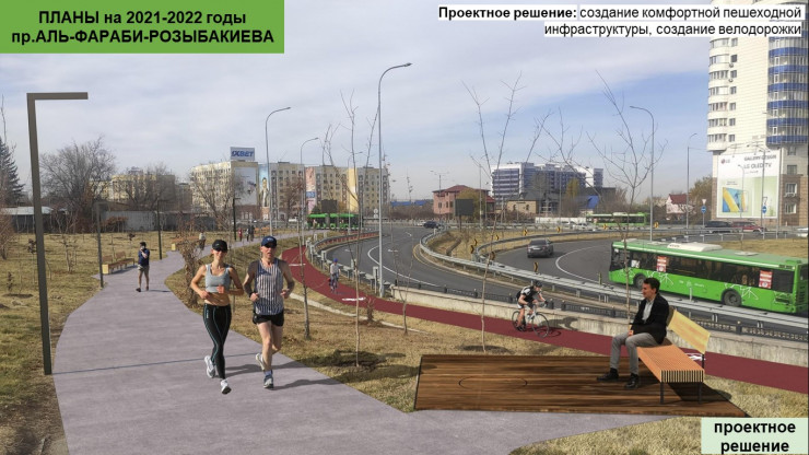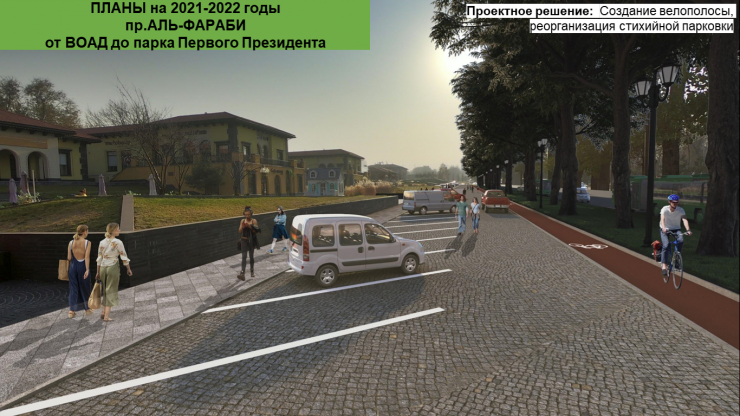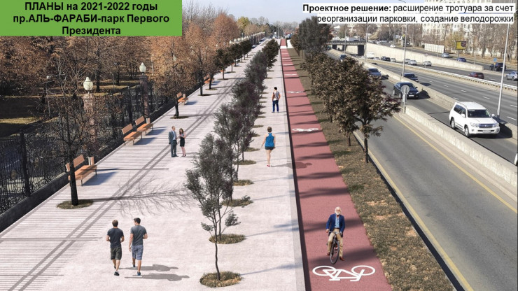 По самому проспекту Аль-Фараби от ВОАД до парка Первого Президента построят тротуары, велодорожки и автобусную полосу. Акимат планирует обновить также и весь путь до аэропорта. Подробнее читайте здесь