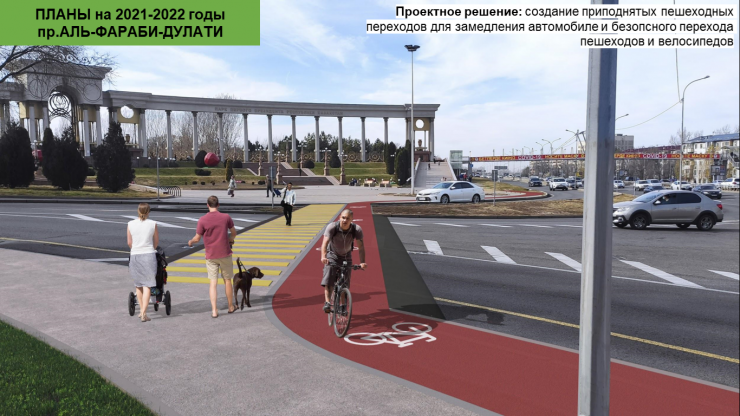 Проспект Аль-Фараби в Алматы изменится до неузнаваемости. Дорогу реконструируют от ВОАД до парка Первого Президента. Причем изменится не только сама дорога, но и прилегающие дома, мосты и реки. Построят зеленый мост, создадут тротуары и велодорожки, добавят полосу для общественного транспорта. Об этом говорится в новой презентации акимата по развитию Алматы до 2022 года, передает корреспондент Tengrinews.kz.