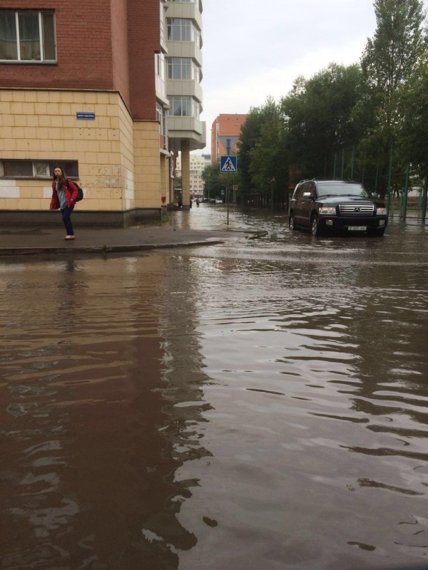 Проспект Бауыржана Момышулы пришлось закрыть для движения из-за большого количества воды на дороге. Как отметили в местной полиции, улица остается закрытой до сих пор.