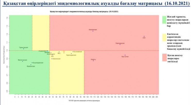 В "красной" зоне: Нур-Султан, Алматы, Павлодарская, Акмолинская, Северо-Казахстанская области.