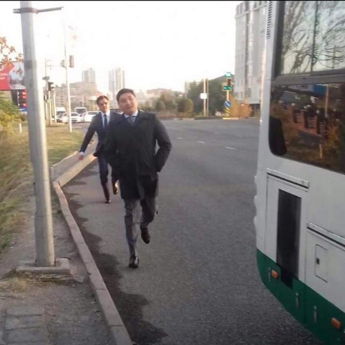 На работу без служебной машины: Аким Шымкента бежал за автобусом