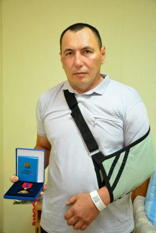 Министр экологии, геологии и природных ресурсов Магзум Мирзагалиев передал пострадавшему инспектору "Охотзоопрома" Самату Оспанову орден "Айбын" II степени, сообщает Tengrinews.kz со ссылкой на пресс-службу ведомства.