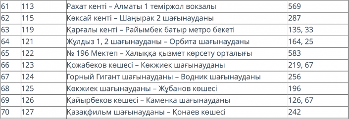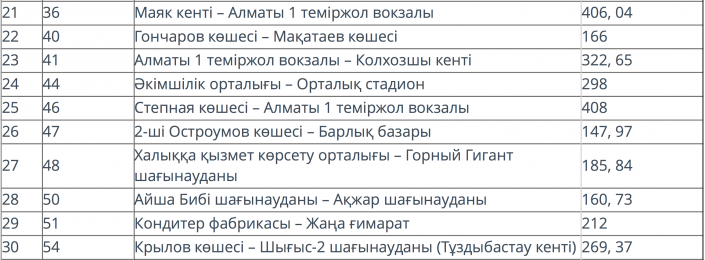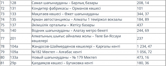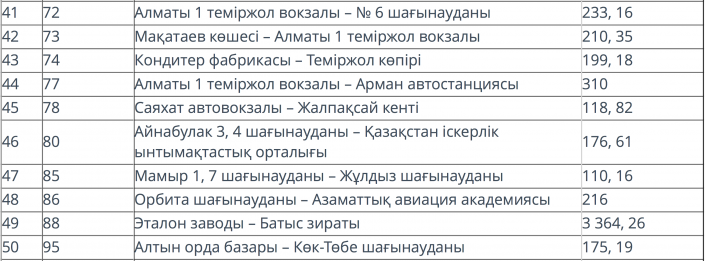 Относительно "выгодным" маршрутом оказался № 34 (95,41 тенге). Также подорожала стоимость на 131-м маршруте "Кондитерская фабрика - улица Орманова", которая составила 101 тенге (в ноябре 2017 года было 91,81 тенге).