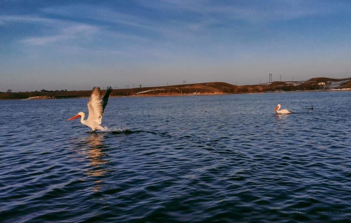 Как рассказал Алмаз Жезовский, пеликанов он заснял две недели назад на Кенгирском водохранилище.