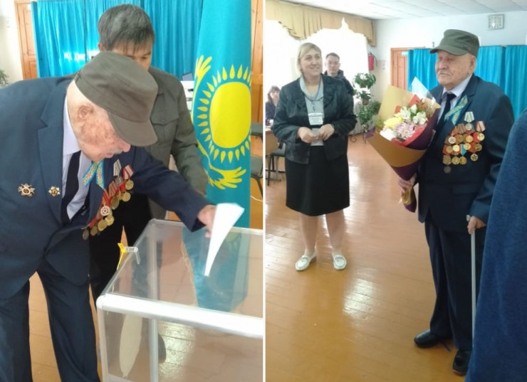"Фронтовик Яхия Тасыров, проживающий в Сырдарьинском районе Кызылординской области, прибыл на участок № 155 в центре поселка еще до открытия, чтобы проголосовать в знаменательный для страны день", - отметили в облизбиркоме.