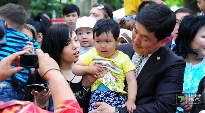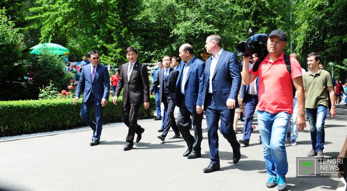 Тем временем, с планами по реконструкции парка решил ознакомиться аким Алматы Бауыржан Байбек. Он также поздравил детей с международным праздником. Ожидая открытия программы среди других гостей, аким сфотографировался с детьми и вышел на сцену, чтобы сказать поздравительную речь.